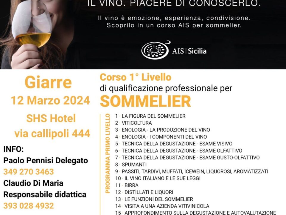 Corso di qualificazione professionale per sommelier 1° Livello – Jonico Etnea