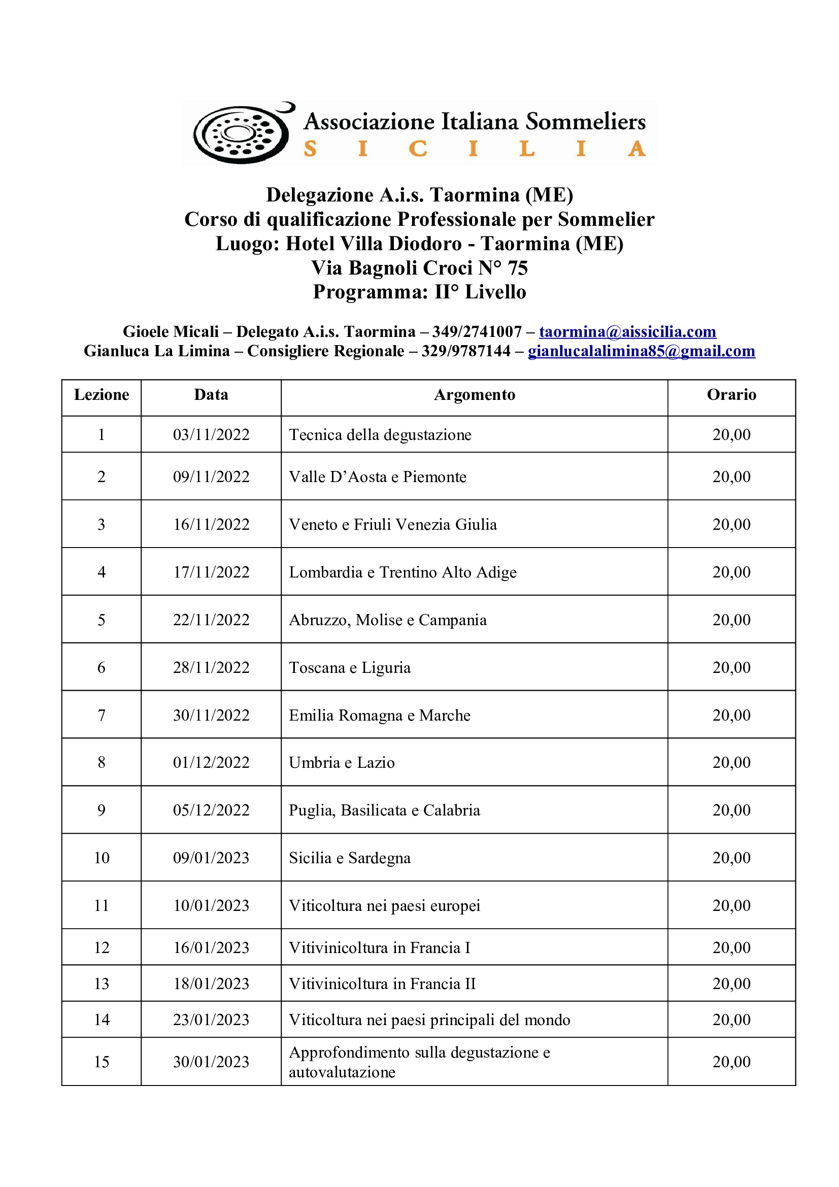 Gioele Micali – Delegato A.i.s. Taormina – 349/2741007 – taormina@aissicilia.com