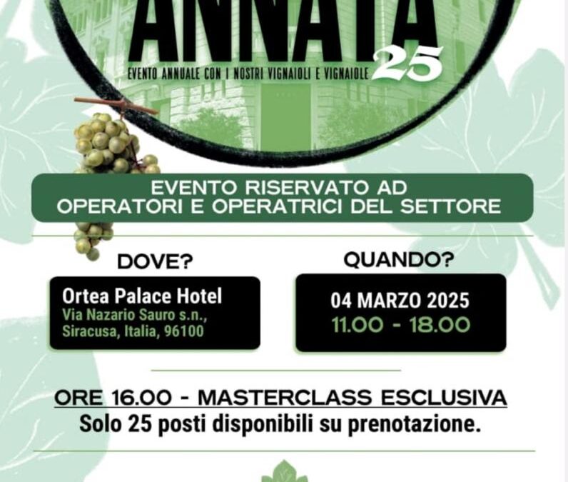 AIS Siracusa e La Valigia di Bacco presentano: “Annata25”. Evento annuale con i vignaioli de La Valigia di Bacco, riservato agli operatori di settore.