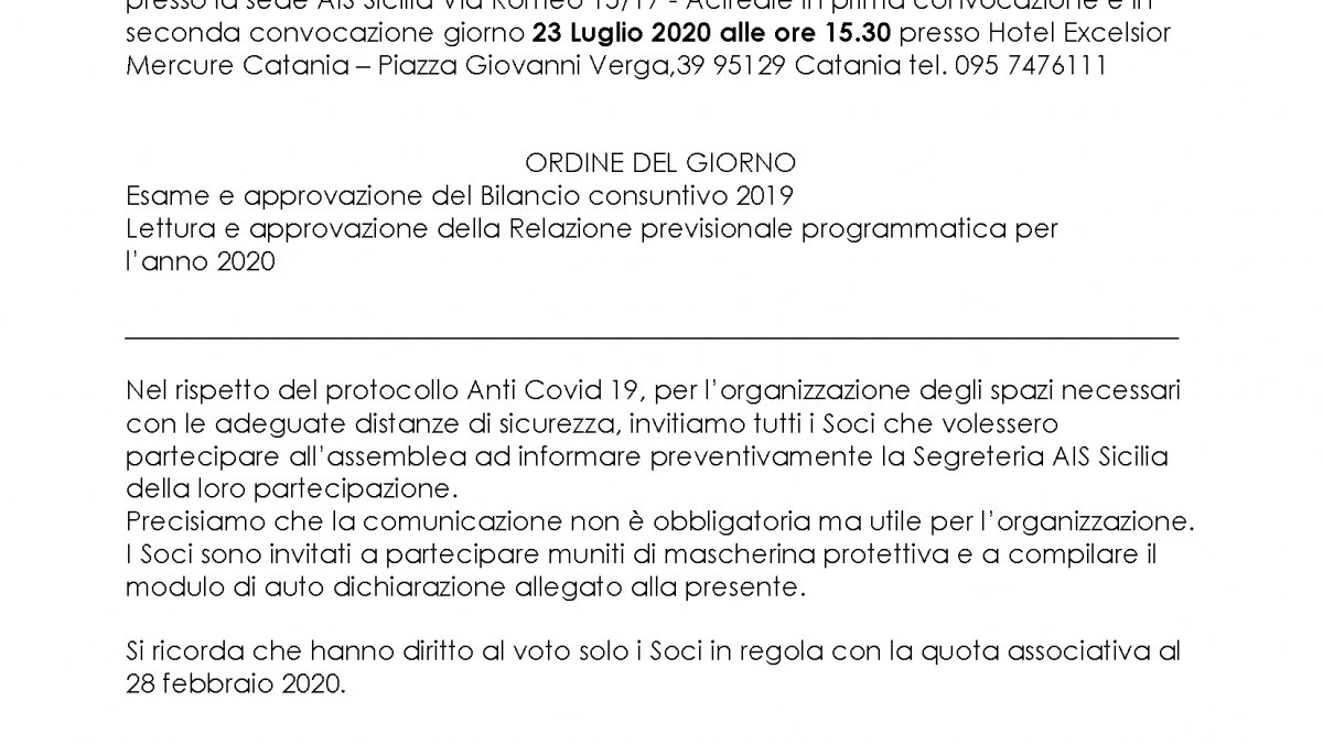Convocazione assemblea dei soci AIS Sicilia 2020
